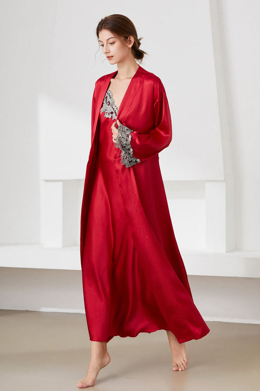 Sold outContrast Lace Trim Satin Night Dress and Robe Set
